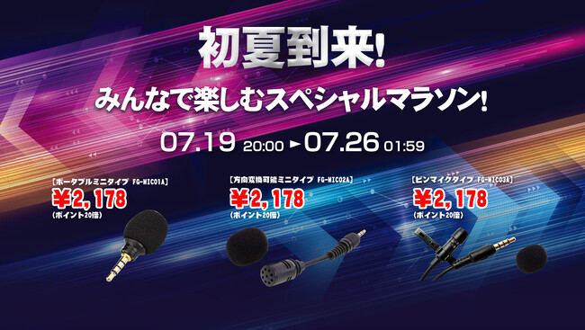 楽天市場「Show !t」は7月19日(水)20:00~7月26日(水)01:59まで3種類から選べるコンデンサーマイク購入でポイント20倍プレゼント・全商品送料無料の楽お買い物マラソンに参加します。