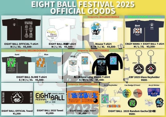 ライブ当日限定で、アコースティックライブ出演アーティストの公式グッズ、「EIGHT BALL FESTIVAL 2025」公式グッズを