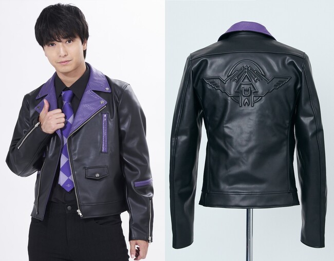 錬金アカデミーの卒業生、クールでキザなエリート錬金術師、黒鋼スパナのジャケットは、黒×紫のライダースジャケット。背面に錬金アカデミーのマークがエンボス加工で入っています。ネクタイも同時予約しており、この2つのアイテムで、黒鋼スパナになりきることができます。