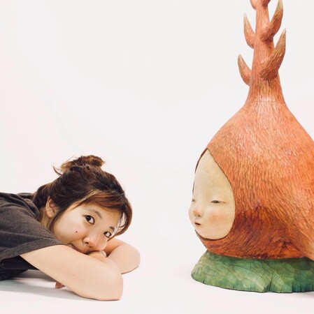 中村萌は、1988年東京生まれ、2012年女子美術大学大学院美術研究科美術専攻を修了し、楠などを丸太の状態から削り出し、油絵具で彩色する手法で彫刻作品を制作しています。数多くのグループ展にも精力的に参加し、2014年の台湾でのアートフェアをきっかけに、海外からも注目されているアーティストです。