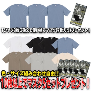 Tシャツ10枚以上のご注文で、使い捨てらくらくマスク(ブラック7枚入)5セット