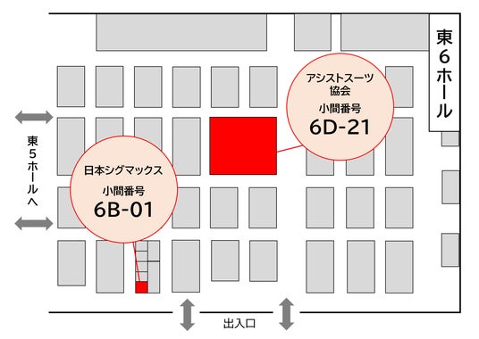 ▲当社・一般社団法人アシストスーツ協会の展示ブース場所