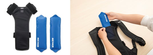 夏場にアシストスーツ装着をする際、快適に過ごせるよう、背中に冷却パックを設置できるアシストギア専用「背中冷却パーツ」をご用意しています。