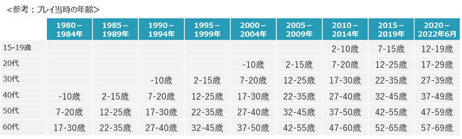 【年代別プレイ率の変化】