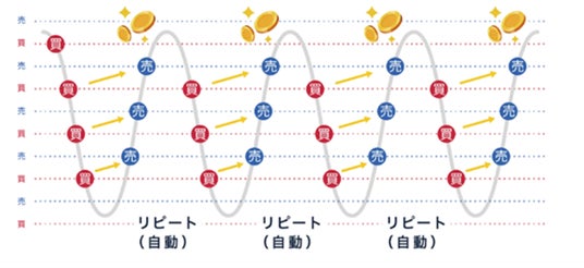 ※相場を面で捉える「トラップトレード」と、一度の発注で繰り返し取引機会を狙う「リピートイフダン」の考え方を組み合わせた独自注文です。