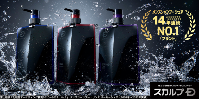 2001年に頭髪専門クリニックに通う患者様専用のシャンプーとして開発されました。その後、2005年に「スカルプD」と命名し、一般発売を開始。「シャンプー=髪を洗うもの」という時代の中で、スカルプDは、「シャンプー=頭皮を洗う、頭皮をケアする」という斬新なコンセプトを打ち出しました。当時は、1本5,800円で発売しており、シャンプーでは非常に高価格帯の商品でした。その後、徐々に売上を伸ばし、2009年(5代目)にメンズシャンプー市場を確立し、初めて売上No.1を獲得しました。初代スカルプDの発売以降、幾度のニューアルを重ねてきました。2022年10月には、14回目となるリニューアルを行い、従来のボトル型パッケージから付け替えシステムに変更し、スタイリッシュなデザインに変更をいたしました。2023年には、14年連続売上NO.1※1を獲得することができました。