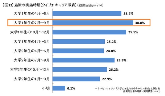 「タイプ1:オープンカンパニー」「タイプ2:キャリア教育」ともに「大学1年生の7~9月」が最多。