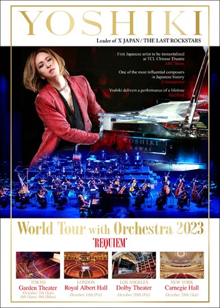本ツアーは、10月7日(土)、8日(日)、9日(月)に東京ガーデンシアター(日本)、10月13日(金)に150年以上の伝統を築いてきた英ロイヤルアルバートホール(英国)、10月20日(金)にアカデミー賞の授賞式の会場として有名な米ドルビーシアター(米国)、そして10月28日(土)に世界の音楽の殿堂として知られる米カーネギーホール(米国)で開催される。この英米歴史的3会場を制覇するのは、YOSHIKIが日本人アーティストとして初であり、また本ツアータイトルは、昨年亡くなった母親に捧げた新曲「REQUIEM(レクイエム)」にちなんで名付けられている。