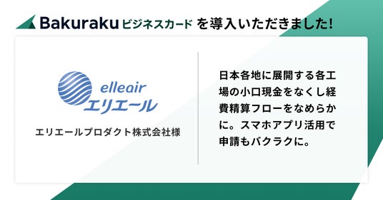 すべての経済活動のデジタル化を目指す株式会社LayerXは、法人向けビジネスカード「バクラクビジネスカード」が、エリエールプロダクト株式会社(代表取締役社長 黒田浩史、以下「エリエールプロダクト」)に導入されたことをお知らせします。