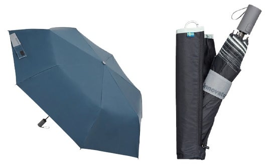 スウェーデン発のブランド「innovator」の晴雨兼用傘。生地内側にコーティングをしているので遮光率、紫外線遮蔽率ともに99%以上で、遮熱効果もあり、日傘としても使用可能です。男性にも使いやすい大きめサイズは、ハンズ限定仕様。傘袋にはカラビナが付いており、濡れた傘をカバンの外に付けることも可能です。