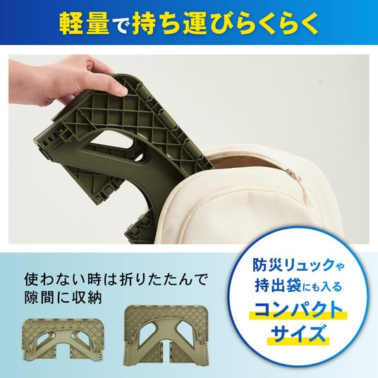 非常時にも役立つ、簡単に収納・清潔に使える防災トイレ。毎日でも使える便利なステップ台としても活躍。