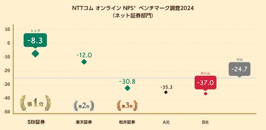 NTTコム オンライン・マーケティング・ソリューション株式会社(本社:東京都品川区、代表取締役社長:塚本 良江、以下NTTコム オンライン)は、NPSベンチマーク調査2024ネット証券部門を実施しました。この結果、最もNPSが高いのはSBI証券となりました。