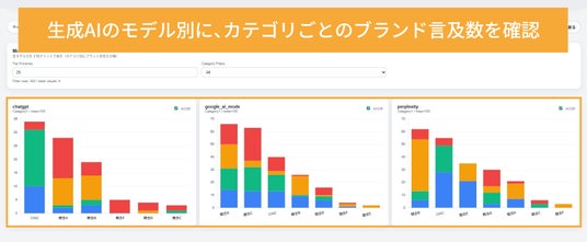 本機能により、ブランドのプレゼンス(存在感)や評価構造を生成AIのモデル別・カテゴリ別に明らかにし、戦略策定に活かすことができます。