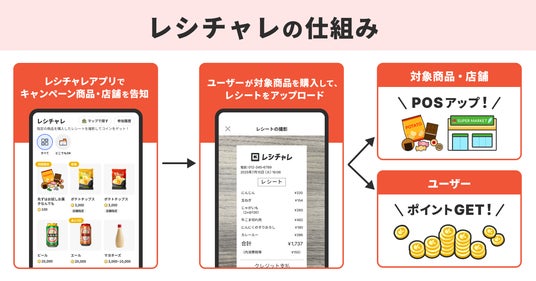 当社提供の節約アプリ「レシチャレ」は、アプリ上にキャンペーン商品を掲載し、アプリユーザーはその商品を購入したレシートをアップロードすることによってポイントが獲得できる仕組みです。