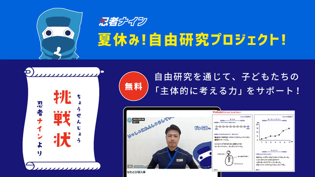 この企画は、忍者ナインが伝授する動画「極秘・なわとびが上手にとべるコツ」を見ながらご自宅でなわとびを練習し、夏休みの自由研究として取り組んでいただくことができます。お子さまが自ら目標を立て、目標の達成に向けて計画・実践し、ひと夏をかけて目標を達成するプロセスを経験していただくことができます。