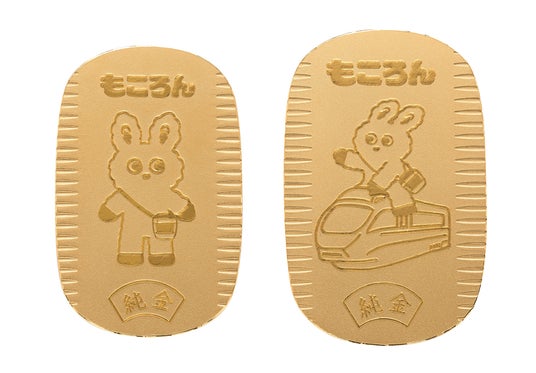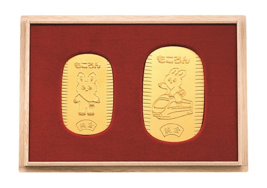今般販売するのは20g小判と30g小判と2枚入りセットの3種類です。お気に入りのロマンスカーモチーフのポシェットをかけたもころんと、特急ロマンスカーに乗るもころんがそれぞれデザインされ、セットは特製の桐箱付きです。記念品としても、また、金価格の高騰傾向が続くなか金製品のコレクションとしてもおすすめです。
