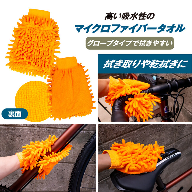 グローブタイプで拭きやすいマイクロファイバータオルは拭き取りや乾拭きに最適です。