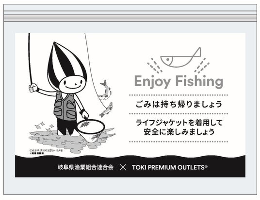 ●内容:岐阜県内の漁協が発行する遊漁券(今シーズンのもの)を、土岐プレミアム・アウトレットのインフォメーションセンターでご提示いただくと、お買い物がさらにお得に楽しめる「土岐プレミアム・アウトレット クーポンシート」と、釣り人の必須アイテムである「フリーザーバッグ(3枚入り)」(なくなり次第終了)をプレゼントします。