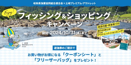 岐阜県漁業協同組合連合会(所在地:岐阜県岐阜市、以下「岐阜県漁連」)と、土岐プレミアム・アウトレット(所在地:岐阜県土岐市 運営:三菱地所・サイモン株式会社)は、2024年6月1日(土)~10月31日(木)の期間、釣りとショッピングを両方楽しめる「フィッシング&ショッピングキャンペーン」を開催します。