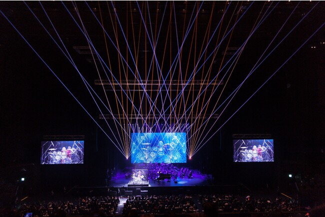 さらに今回は、クラシックコンサートのステージにドラムが登場するという、YOSHIKIならではの試みで観客を驚かせる場面も。チャイコフスキーの「弦楽セレナーデ」と、ヘンリク・ミコワイ・グレツキの「悲歌のシンフォニー」のオーケストラの生演奏をバックに、YOSHIKIのフルセットドラムによるパフォーマンスを披露し、観客の度肝を抜いた。レーザーやLEDライトを使い、まるで嵐を巻き起こすような迫力満点のステージで、観客を圧倒。クラシックとロックを融合させた前代未聞のステージでYOSHIKIの真骨頂を見せた。