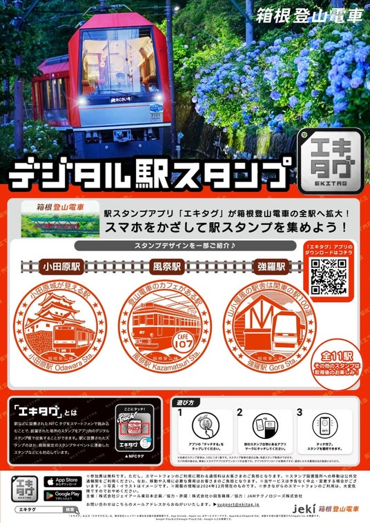 ◎株式会社ジェイアール東日本企画が提供する駅スタンプアプリ「エキタグ」では、2024年12月25日(水)正午より、株式会社小田急箱根「箱根登山電車」のエキタグ対応駅が拡大します。