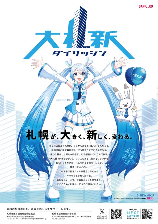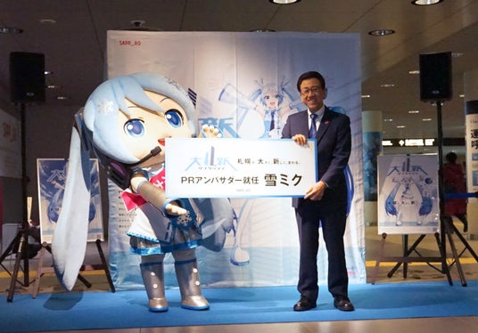 クリプトン・フューチャー・メディア株式会社(本社:北海道札幌市、代表取締役:伊藤博之、以下クリプトン)が展開する、北海道を応援するキャラクター『雪ミク(初音ミク)』が、「大札新(ダイサッシン)」PRアンバサダーに就任いたしました。ビジネスのまちとして進化し続けている札幌の魅力をアピールすることで、企業誘致のプロモーションに協力してまいります。2025年1月30日(木)には札幌駅前通地下歩行空間(チ・カ・ホ)にて就任式が執り行われ、札幌市の秋元克広市長より就任証をいただきました。札幌が、大きく、新しく、変わる「大札新」にぜひご注目ください。