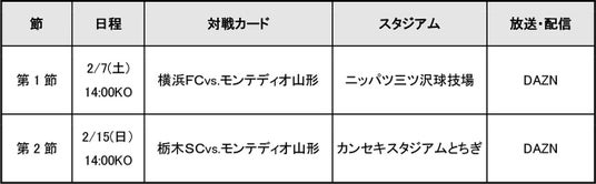 明治安田J2・J3百年構想リーグ 地域リーグ 第1節、第2節の詳細が下記の通り決定いたしましたのでお知らせいたします。モンテディオ山形の対戦カードにつきましては以下の通りです。