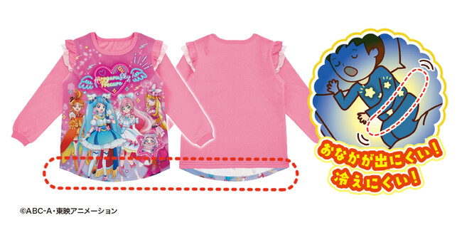 2つめは、前丈が長くなりおなかが出にくく、冷えにくい仕様になり、寝冷え防止に役立つパジャマになりました。