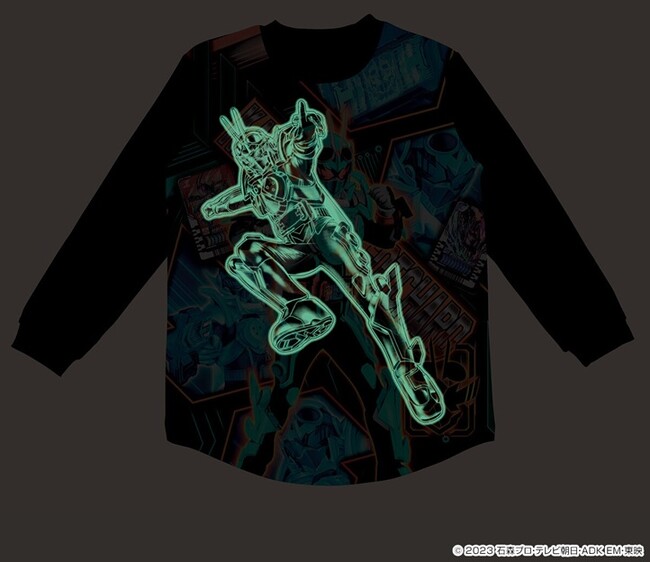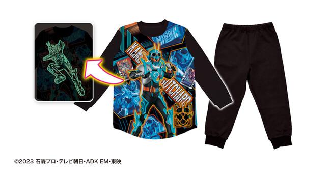 蓄光プリントで「仮面ライダーガッチャード」「ひろがるスカイ!プリキュア」のキャラクターイラストが浮かびあがります。