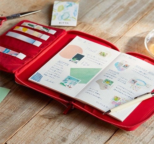 手帳のように使えるノート。ノート本体と専用カバー、定規やしおりとして使える下敷きの3点セットです。日付は自分で書き込めるため、3日ぶりでも、1か月ぶりでも、日付に縛られず自分らしいペースで使うことができます。カバーにはたくさんポケットが付いているため、複数のデコグッズを収納して持ち歩くことができます。