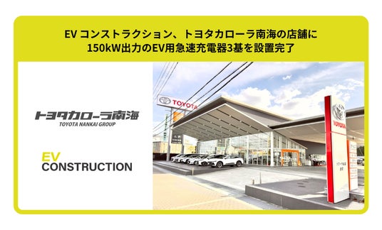 Terra Charge 株式会社のEV充電器の設置・施工を担う子会社EV Construction株式会社(本社:東京都港区、代表取締役:中川耕輔、以下「当社」)は、トヨタカローラ南海株式会社(本社:大阪府堺市、代表取締役社長:久保尚平、以下「トヨタカローラ南海」)のレクサス阿倍野、レクサス泉北、トヨタカローラ金岡店へ150kW出力のEV用急速充電器を設置完了いたしました。
