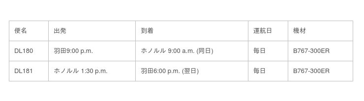 羽田(HND)-ホノルル(HNL)便の運航スケジュール(2022/12/1~2023/3/24)