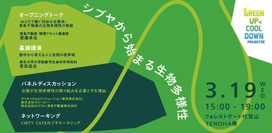 その一環として3月19日(水)及び20日(木・祝)に、当社施設フォレストゲート代官山内「TENOHA代官山」(東京都渋谷区)において、環境に関するトークショー、ワークショップ等のイベントを開催します。
