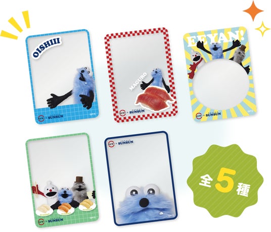 本コラボでは、“スンスン meets スシロー”をテーマに、スシローでスンスンに出会える様々な企画を実施します。コラボメニューとして、スンスンのピック付きおすしやステッカー付きのスイーツをはじめ、スンスンがプリントされたエコバッグ付きのドリンクや、モフモフとしたさわり心地の指人形マスコット付きお持ち帰りセットなど、コラボ限定グッズ付きの商品が多数登場します。また、店舗の座席タッチパネルでは、初めてスシローのお店を訪れたスンスンのリアクションなどを楽しめる特別なコラボ限定動画を放映。さらに12月2日からは、限定クリアカード付きのおすしが登場し、クリアカードに同封されている用紙の2次元コードを読み込むと、抽選でコラボ限定湯呑み2個セットが当たるキャンペーンに参加することができます。(※2)