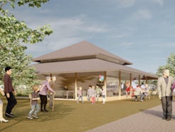 施設概要:多目的交流スペース、食堂・厨房、コワーキングスペース、半屋外等