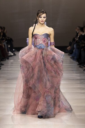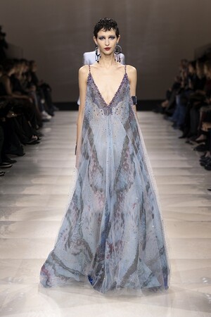 ジョルジオ・アルマーニにとってファッションとは、真剣に向き合うべきものだけではなく、遊び心や曖昧さを表現するものでもあります。特にオートクチュールは、デザイナーが予期せぬクリエイティビティを発揮できる世界です。