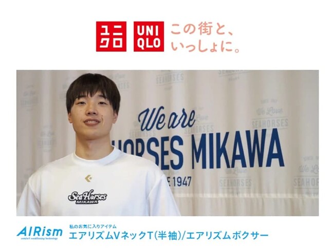 この度、愛知県内ユニクロ「AIRism」のモデルとして、#19西田優大選手が店舗看板に掲載されます。