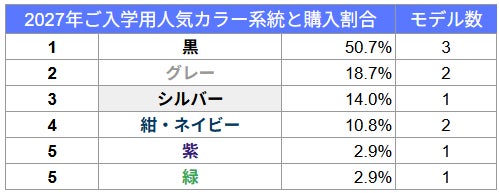 トップの黒には、新色の「ブラック×アッシュブルー」など、差し色が入ったものやバイカラーモデルも含まれ、黒をベースに好みのデザインが選びやすくなっていることも要因です。