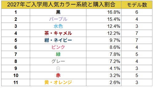 1965年創業の株式会社土屋鞄製造所(本社・東京都足立区、以下土屋鞄)は、3月21日のランドセルの日に合わせ、展開する3ブランド「土屋鞄のランドセル」「grirose(グリローズ)」「depsoa(デプソア)」それぞれの2027年ご入学用ランドセルの発売後1ヶ月間(2026年2月10日~3月9日)の販売状況を集計したカラー別ランキングと注目色を発表します。