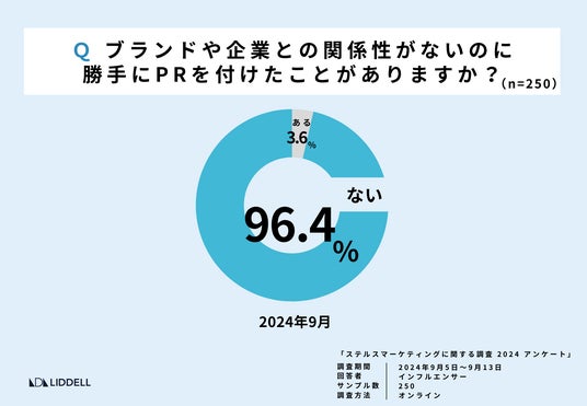 企業・ブランドと広告依頼などの関係性がないのに、PR表記を勝手に付けたことはありますか? 96.4%が「ない」と回答