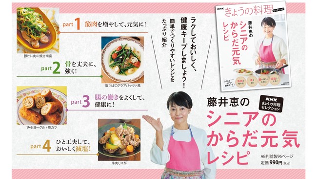 管理栄養士でもある藤井恵さんが、シニアがとりたい栄養素や食事のポイントを押さえた、簡単でおいしいレシピをたっぷり紹介する 『NHKきょうの料理セレクション 藤井恵のシニアのからだ元気レシピ 』が2月18日に発売された。
