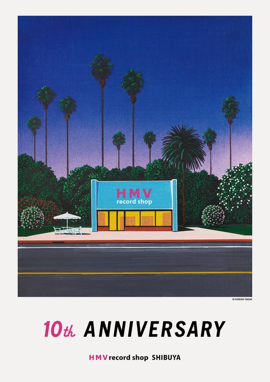 このたび、「HMV record shop 渋谷 10周年企画」の第二弾として、10周年記念のメインビジュアルとなる永井博氏の描き下ろし作品を公開いたします!さらに、10周年を盛り上げるHMV record shop × 永井博コラボグッズの販売も決定!この機会に是非お買い求めください。