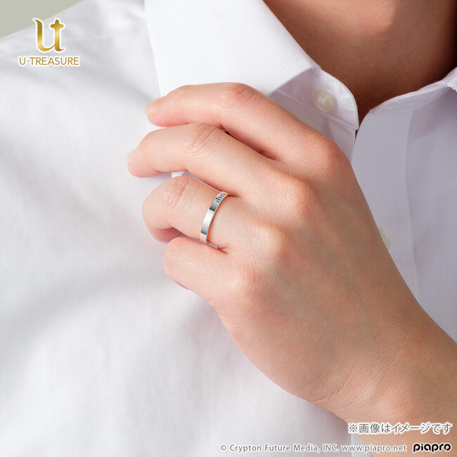 イコライザーをイメージしたリングです。2本重ねることで、デュエットや二人のハーモニーなどを連想させるデザインです。各キャラクターのイメージカラーを選択でき、リング裏側には選んだキャラクターのモチーフを刻印可能です。おふたりの新たな人生が幸せで満ち溢れますように…