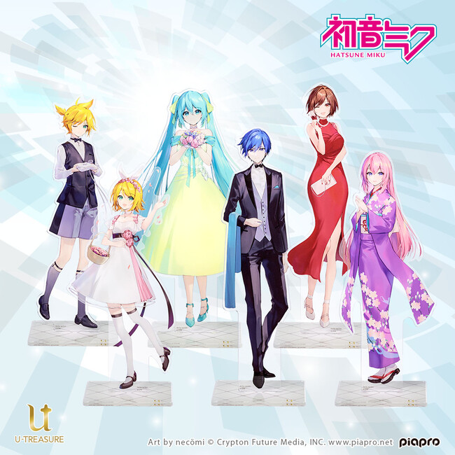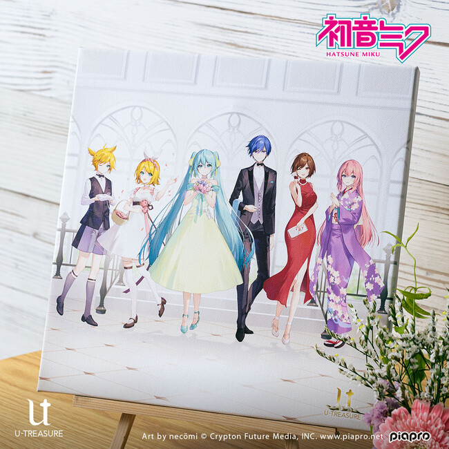 大人のための本格的なキャラクタージュエリーを扱うユートレジャー(東京都豊島区:代表取締役:伊藤 崇史)は、「ピアプロキャラクターズ」の描き下ろしアートを使用したファブリックパネルとアクリルスタンドを、8月31日(水)~9月25日(日)の期間限定で予約受付を行ないます。このたびの新作は、イラストレーター「necömi」による、華麗なドレス姿の初音ミク、鏡音リン、鏡音レン、巡音ルカ、MEIKO、KAITOがデザインされています。お部屋のインテリアとしてはもちろん、ウェルカムボードなどに使用できるファブリックパネル1種類と、初音ミクたちそれぞれの20cm以上あるビッグサイズのアクリルスタンド6種類です。また同期間に、3月に発売したブライダルリング(指輪)3種類の、シルバー素材バージョンの予約受付も行います。ユートレジャーコンセプトストア池袋、ユートレジャーオンラインショップにて取り扱います。