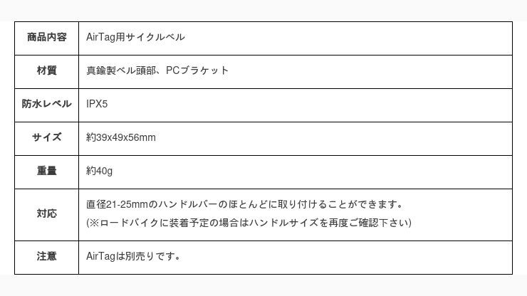 自転車に埋め込みできるAirTag用ケースカバーで、ベルの中に隠せるタイプです。ベルの中に埋め込みいつでも自転車の追跡ができるようになり盗難対策になります。