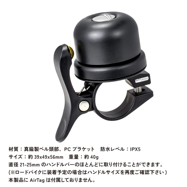 自転車に埋め込みできるAirTag用ケースカバーで、ベルの中に隠せるタイプです。