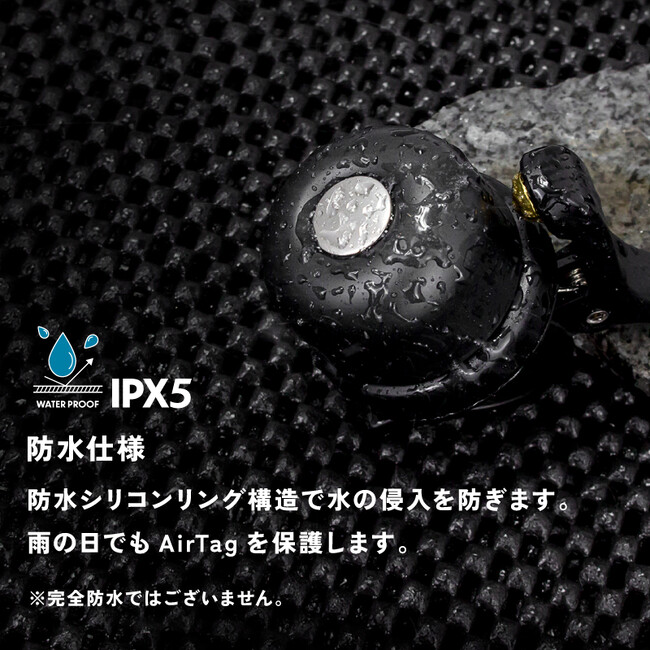 防水シリコンリング構造で水の侵入を防ぎます。雨の日でもAirTagを保護します。