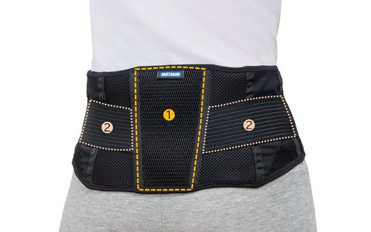 特徴3.医療現場で培った技術で腰をしっかりサポート1.背部の硬質メッシュ生地が腰部の安定性を高めます。