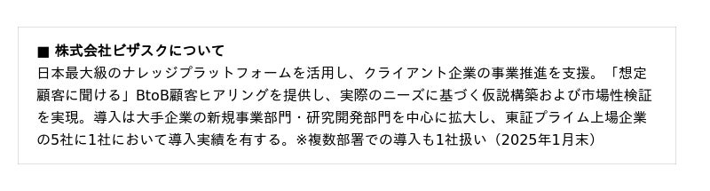 「知見と、挑戦をつなぐ」をミッションにグローバルなナレッジプラットフォームを運営する株式会社ビザスク(以下、当社)は、『人と組織の関係性を可視化する仕組みから生まれた、新規事業づくり』をテーマに、BIPROGY株式会社 グループマーケティング部 小谷野 圭司 氏、同じく BIPROGY株式会社 プロダクトマネジメント部 web3 アーキテクト 牧野 友紀 氏 ご登壇による無料オンラインセミナーを 1/21 (水) 16:00 より開催します。