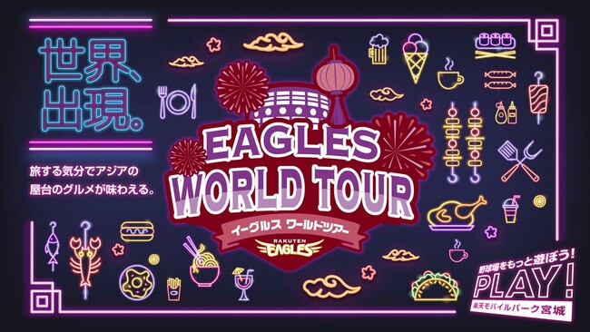 株式会社楽天野球団(本社:宮城県仙台市宮城野区、代表取締役社長:米田 陽介)は、6月23日(金)~7月9日(日)楽天モバイルパーク宮城で開催する一軍公式戦において、2023シーズン イベント第3期『イーグルス ワールドツアー』を開催することとなりましたので、お知らせいたします。